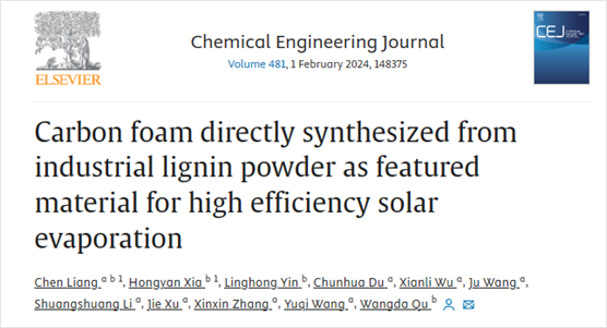 近日,William威廉英国曲望达教授课题组在中科院一区Top国际权威期刊《Chemical Engineering Journal》 (影响因子:15.1)发表了题为“Carbon foam directly synthesized from industrial lignin powder as featured material for high efficiency solar evaporation”的研究论文。