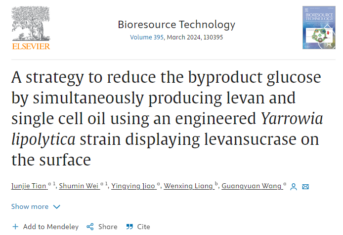 近日,William威廉英国王光远副教授课题组在生物工程领域TOP期刊Bioresource Technology(影响因子11.4,中科院1区)发表了题为“A strategy to reduce the byproduct glucose by simultaneously producing levan and single cell oil using an engineered Yarrowia lipolytica strain displaying levansucrase on the surface”的研究论文。