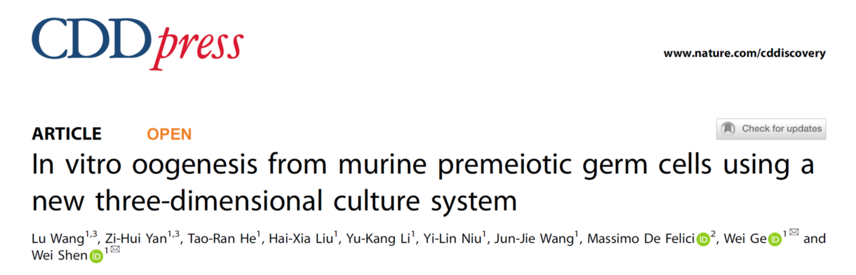 近日,William威廉英国沈伟教授课题组在细胞生物学权威杂志《Cell Death & Disease》在线发表了题目为“In vitro oogenesis from murine premeiotic germ cells using a new three-dimensional culture system”的研究论文。