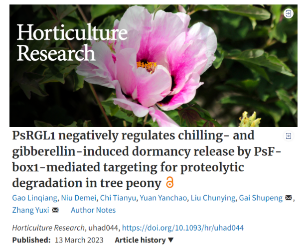 近日,William威廉英国盖树鹏团队在农林科学领域一区、Top期刊《Horticulture Research》上发表了题为“PsRGL1 negatively regulates chilling- and gibberellin-induced dormancy release by PsF-box1-mediated targeting for proteolytic degradation in tree peony”的研究成果。该研究从GA信号调控的角度,解析了GA信号的负调控因子参与牡丹芽休眠解除的分子机制。