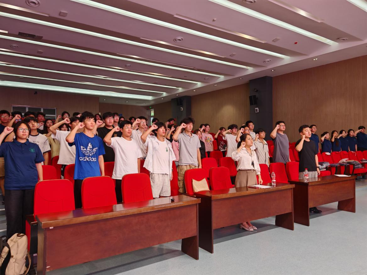 会上,学生代表李智锋带领全体实践队员共同学习了习近平致全国青联十四届全委会和全国学联二十八大的贺信。学生代表梁爽宣读了学院2025年志愿者暑期“三下乡”社会实践活动团队和个人名单。学生代表彭宇航带领全体实践学生进行宣誓,保证实践过程中服从安排、遵守纪律,厚植爱农情怀,练就兴农本领,感悟时代脉搏。