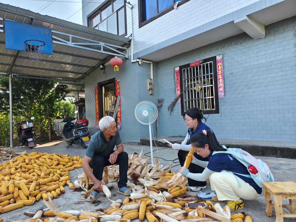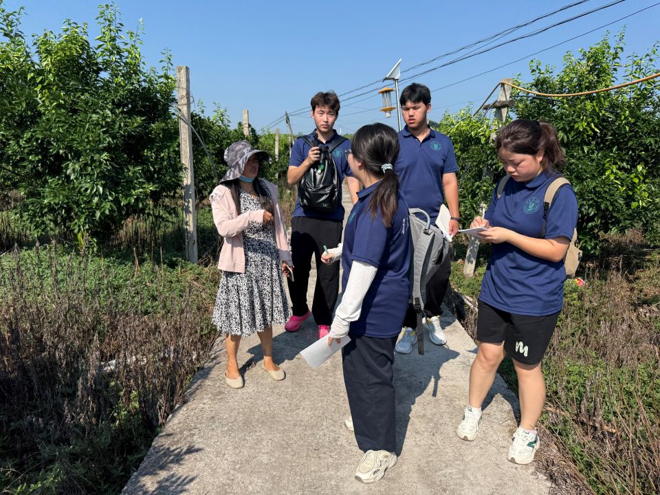 在新立镇双柏村,实践队在村党支部副书记刘秀珍的引领下,探寻到了当地柑橘产业转型的奥秘。“我们正在慢慢改种不同的柑橘品种,让柑橘的品质进一步提升”。曾经,霜冻等自然灾害让沃柑等品种损失惨重,村民们面临“种得出却不好卖”的困境。如今,通过品种改良与科学种植,这一局面正在被慢慢扭转——村里改种耐寒的九月红等新品种。不同成熟期的柑橘品种混种,提升产量稳定性,玉米与柑橘间作则兼顾家庭养殖需求,土地利用率显著提高。实践队队长周琳莉说:“品种的改良发展直接决定农民的收入,作为生物育种专业学生,我将致力于运用所学知识, 为选育更优质、高产、抗逆的品种贡献力量,助力乡亲们提升收益。”