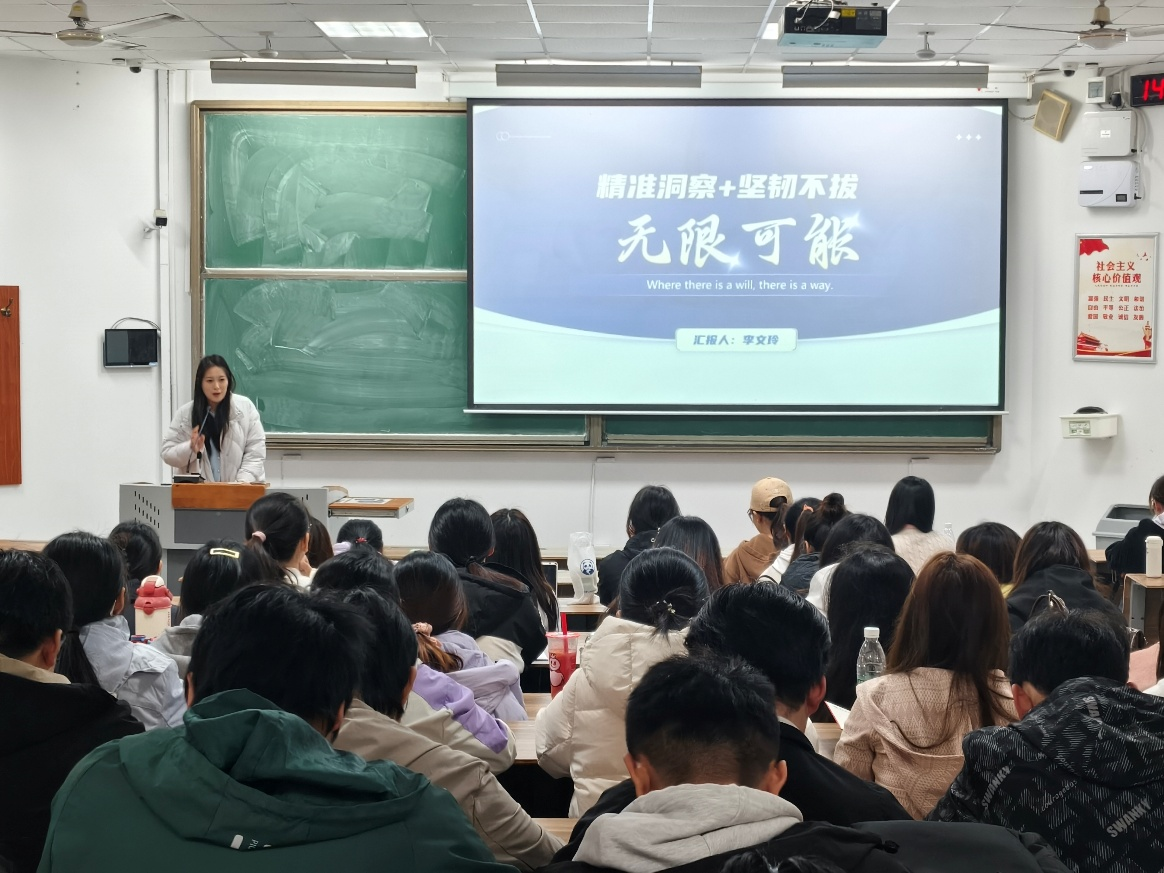 随后,第十届“挑战杯”获奖团队负责人、创新创业大赛金奖获得者李文玲结合自身参赛经历,系统介绍了如何选择赛道、确定课题、组建团队,并强调市场调研与任务分配的重要性。她鼓励同学们保持耐心、重视协作,并寄语道:“勇敢的人先享受世界,只有敢于尝试,才能收获精彩。”分享内容贴近实际,有效激发了学员们的创新创业热情。