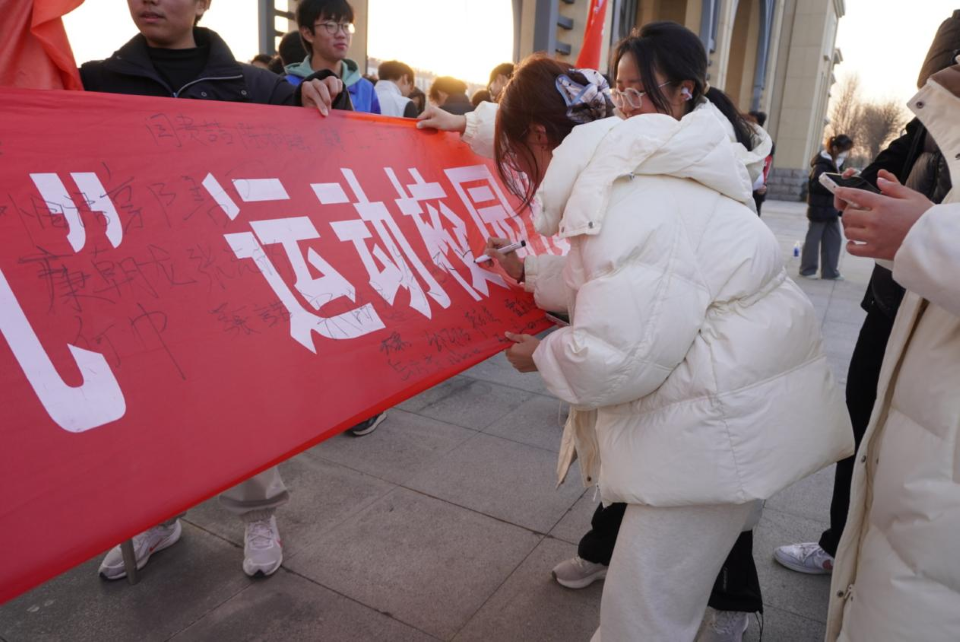 活动最后,全体师生齐聚终点,有序来到“青春燃热血,接力忆峥嵘”主题横幅前郑重签名,并手持横幅合影留念。负责老师马良作总结发言,深入阐释“一二·九”运动精神的当代价值,勉励同学们从历史中汲取力量,将赛场上的拼搏姿态转化为砥砺前行的不竭动力,以青春脚步赴历史之约,以农科才智筑复兴之基!