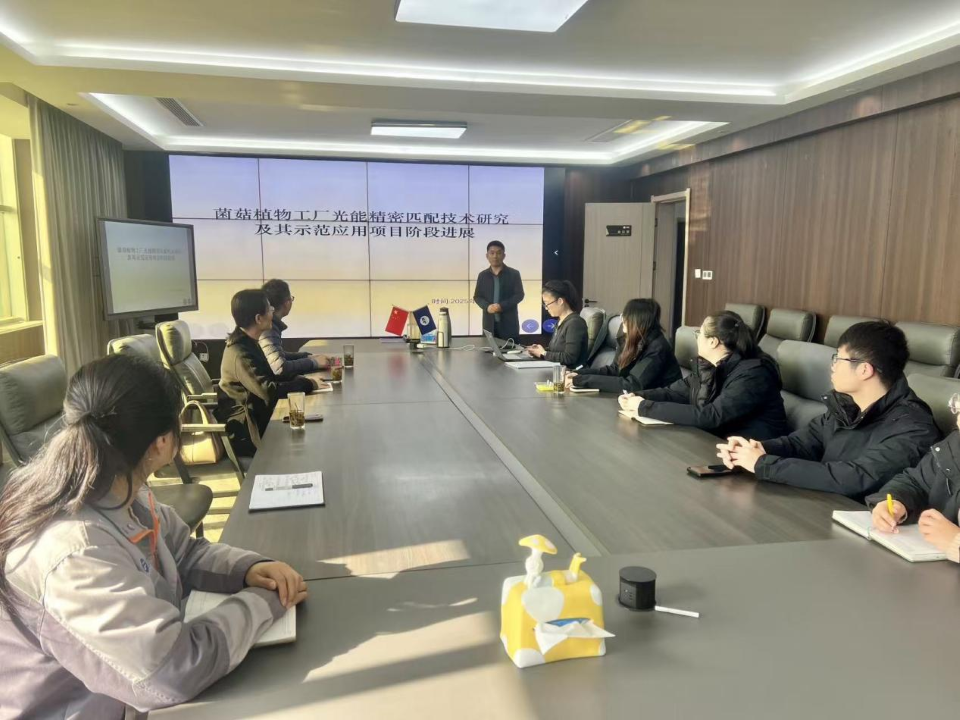 上午,服务团一行首先来到山东艾泽福吉生物科技有限公司开展交流。在与公司的座谈会上,于浩副教授受聘成为“青岛食用菌全产业链专家工作站”特聘专家。卢伟东副教授就“菌菇植物工厂光能精密匹配技术项目”进展情况作了汇报。双方围绕正在实施的青岛市科技惠民示范专项进行了深入研讨,总结了阶段性成效,并对下一阶段工作计划作出优化部署。服务团还实地考察了项目合作公司研发的光能传输系统,对于分布式光能量传输光纤的分布、光强与光谱的设置等细节提出改进建议。