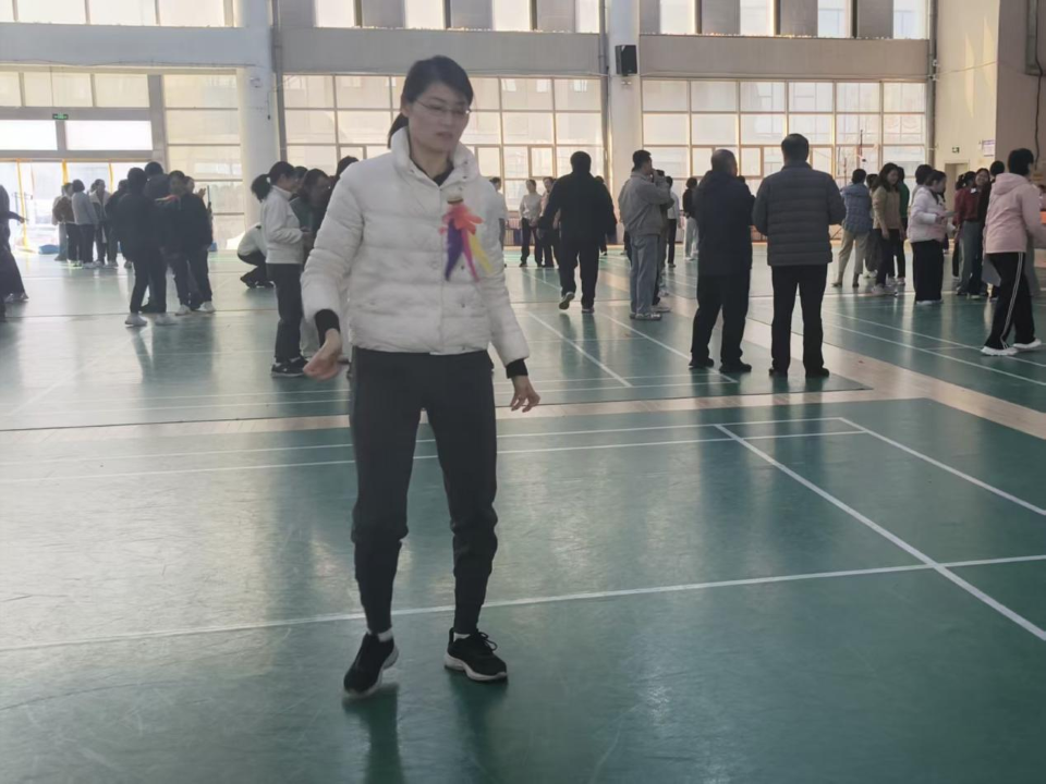 在踢毽子比赛中,选手们分组比拼,五彩毽羽凌空翻飞,单脚踢、交替踢动作利落迅捷,力道十足、节奏明快,现场欢声笑语不断。两项比赛集竞技性与趣味性于一体,让女教职工们在运动中放松身心、增进情谊,共同感受节日的喜悦与活力。