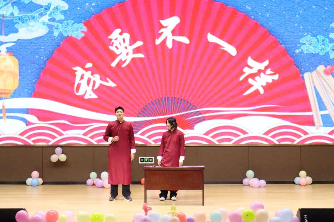 第二篇章“绽彩韶华·舞韵飞扬”中,同学们献上舞蹈《芽》以柔美而坚韧的肢体语言致敬袁隆平院士,表达对科学精神的传承与敬仰。育种专业的同学们带来了合唱《我乘着风飞过来》,歌声清澈而昂扬,如风般掠过全场,唱出了青春的奔放姿态与逐梦的无限向往。相声《我要不一样》以诙谐台词与生动表演引爆笑声。歌曲串烧接棒上演,生科2501与生科2503班接连登场。浅唱与昂扬交替,动静之间,青春的多元色彩在歌声中淋漓展现。表演落幕后,院长杨松抽取第二轮幸运大礼包,将热烈的现场气氛再次推向高潮。